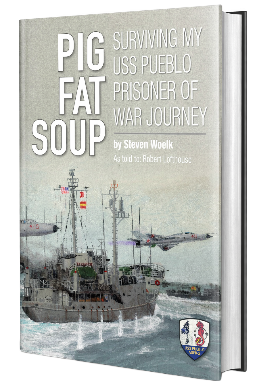 Nearly 60 years later, Woelk, a co-author of other Pueblo stories, has assembled his thoughts and memories into a captivating book: PIG FAT SOUP: Surviving My USS Pueblo Prisoner of War Journey. Woelk blends history, context and personal experience into a manuscript you won’t want to put down.